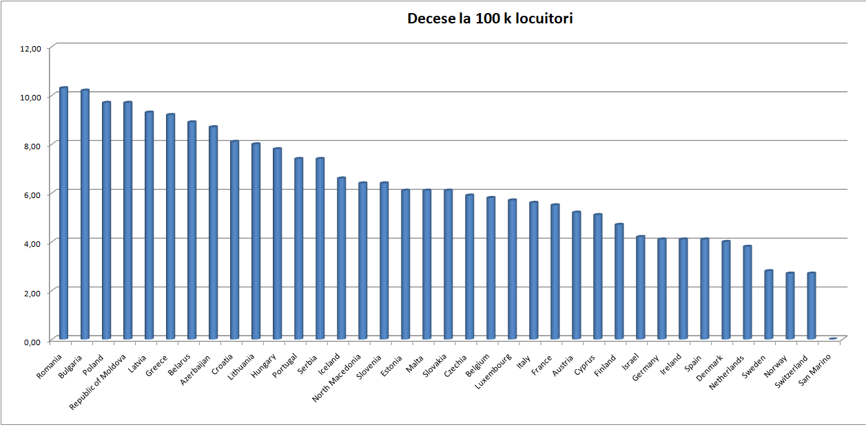 Din păcate, România e campioana accidentelor cu victime în UE, urmată la mică distanță de Bulgaria. Pe scurt, la noi mor cei mai mulți oameni ca urmare a accidentelor. Până și italienii, cunoscuți pentru dezordinea din trafic, stau incomparabil mai bine. Graficul de mai jos are la bază datele Organizației Mondiale a Sănătății.