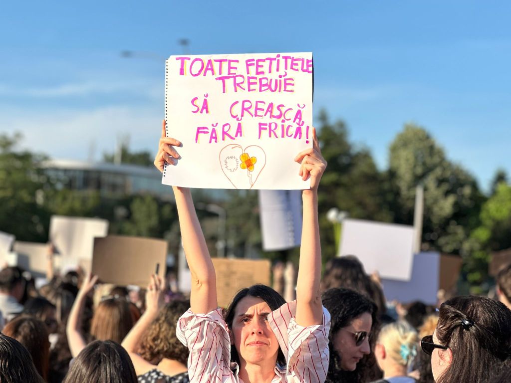 Imagine de la protestul din București față de violența împotriva femeilor, din 3 iunie 2025. Manifestația a fost organizată după uciderea Teodorei Marcu | Foto: HotNews
