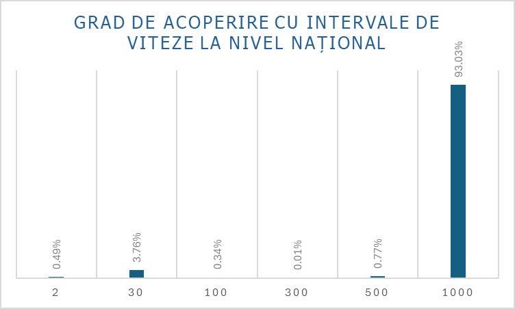 Pe de altă parte, gradul de acoperire a localităților din România cu rețele de fibră optică (tehnologii FTTH/B) este de peste 93%, care permite viteze de descărcare mai mari sau egale cu 1000 Mbps (1 Gbps).