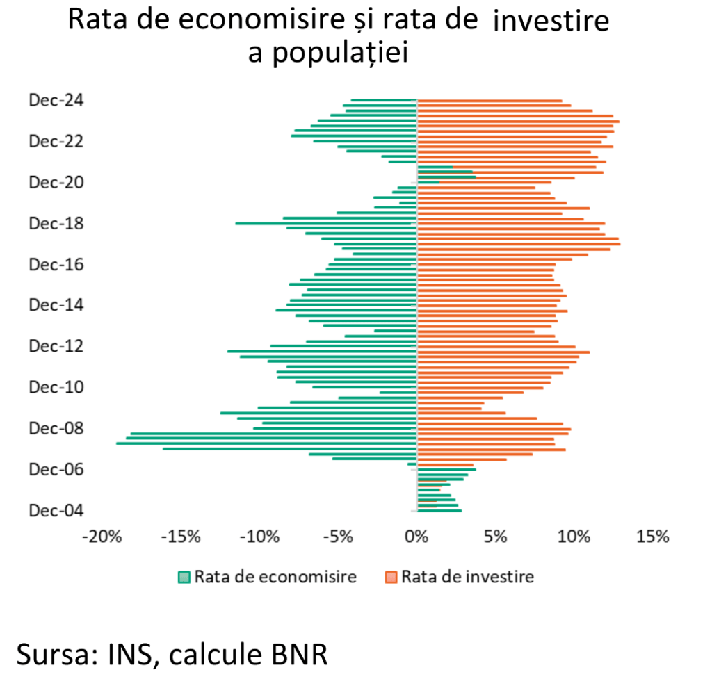 Paradoxal, în ciuda lipsei capacității de economisire curente, rata de investire rămâne pozitivă.