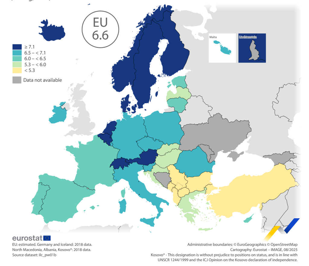 Românii continuă să investească, predominant în locuințe, ceea ce explică și rata excepțională de deținere a proprietății – 94,3% dintre gospodării dețin o locuință, cel mai ridicat procent din Uniunea Europeană. Această tendință se manifestă chiar și în rândul celor aflați în risc de sărăcie, ceea ce sugerează o cultură puternic orientată spre proprietate, indiferent de venit.