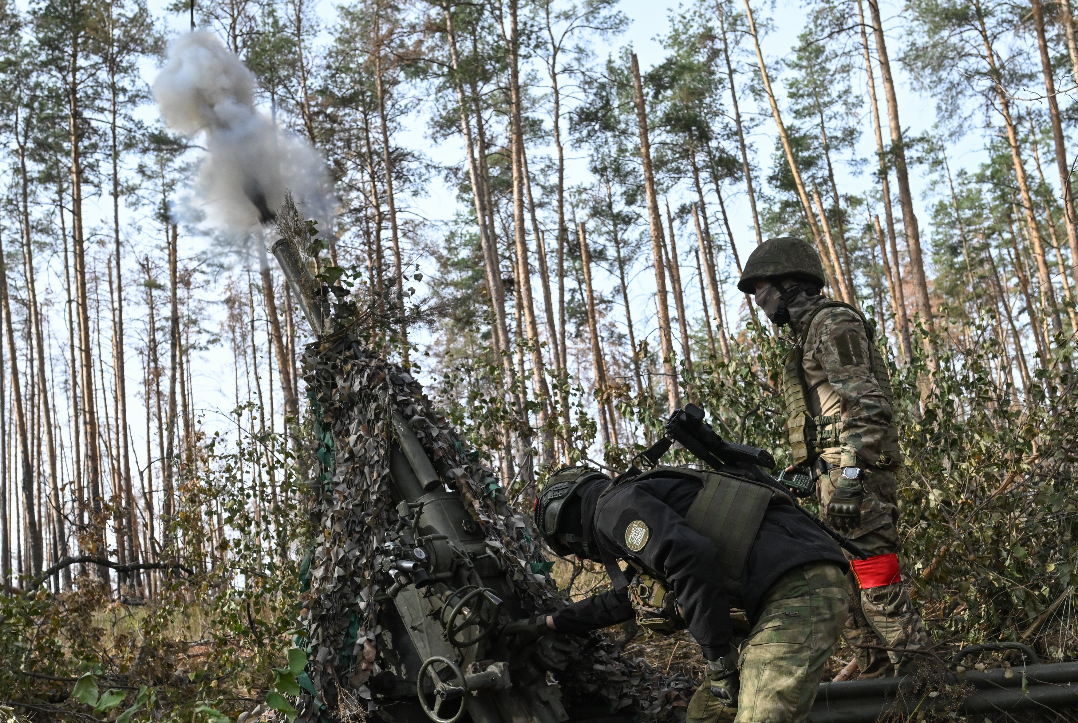 Soldați ruși trăgând cu un mortier pe frontul din UcrainaFoto: Stanislav Krasilnikov / Sputnik / Profimedia