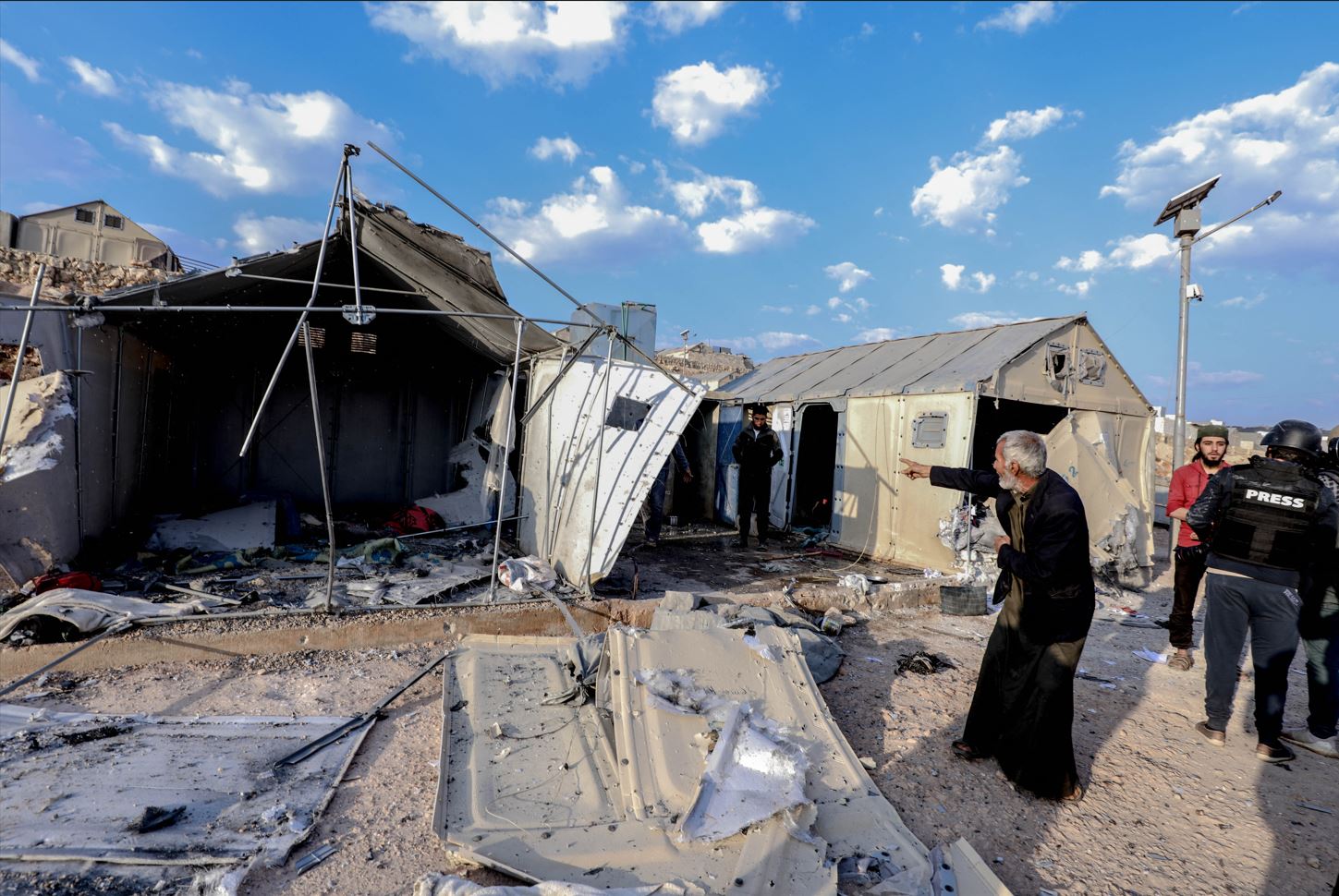 Serviciul de apărare civilă al opoziției a declarat că trei copii și o femeie se numără printre cei uciși în loviturile asupra taberelor aglomerate, unde peste 70 de persoane au fost rănite și transportate de urgență la spitale de campanie.