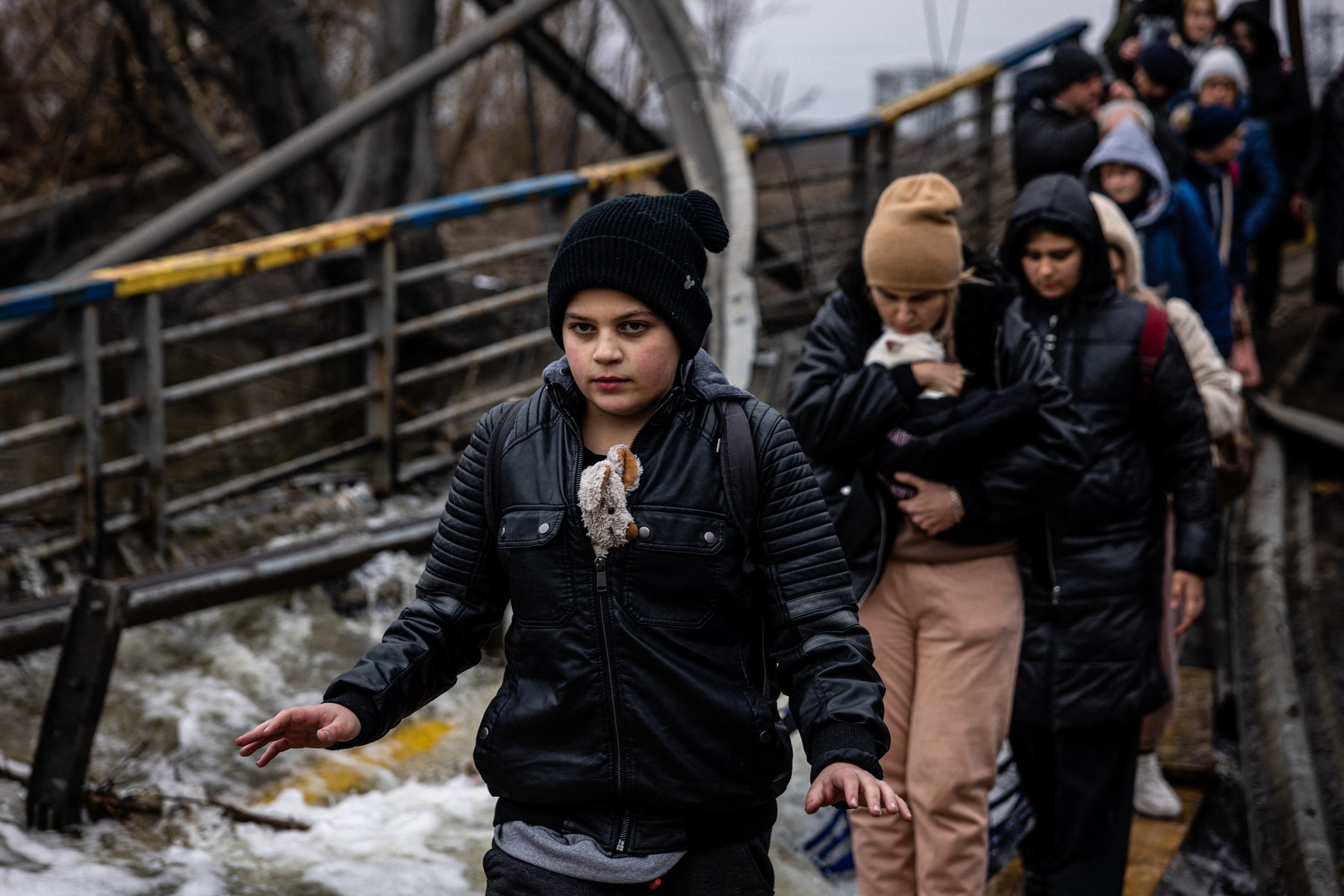 Copii ucraineni evacuati din IrpinFoto: Dimitar DILKOFF / AFP / Profimedia