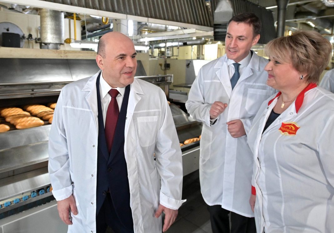 Rusia: Premierul Mihail Mișustin și ministrul agriculturii Dmitri Patruşev, la o fabrică de pâineFoto: Alexander Astafyev / Sputnik / Profimedia