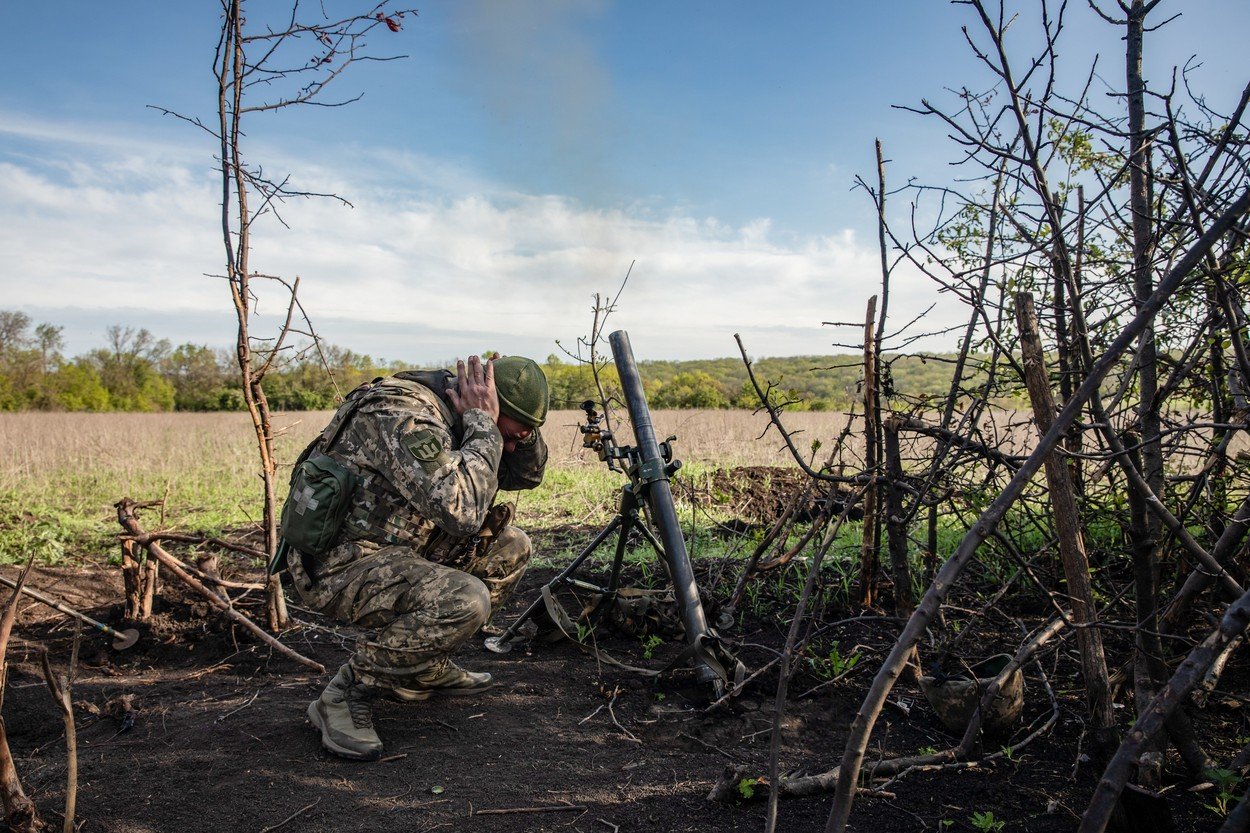Soldat ucrainean atacând pozițiile inamice în suburbiile BahmutuluiFoto: Mykhaylo Palinchak / Zuma Press / Profimedia