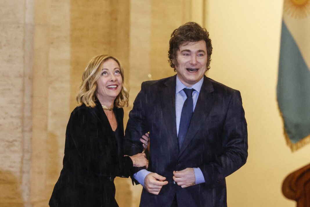 Libertarianul Milei și conservatoarea Meloni au stabilit deja o prietenie apropiată. În timpul întâlnirii lor de la Buenos Aires de luna trecută, liderul argentinian i-a dăruit oaspetelui săi italian o statuetă care-l înfățișa pe președinte mânuind o drujbă, simbol pe care l-a folosit din campania electorală în care le-a promis argentinienilor reducerea cheltuielilor statului.