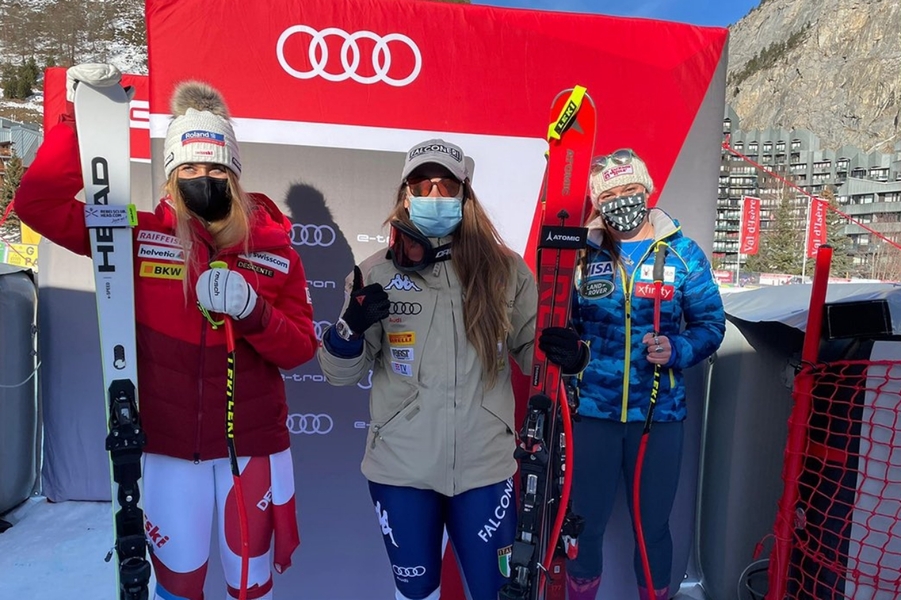 Italianca a profitat de victoria sa, egalând-o pe Suter în fruntea clasamentului Cupei Mondiale al acestei specialităţi.