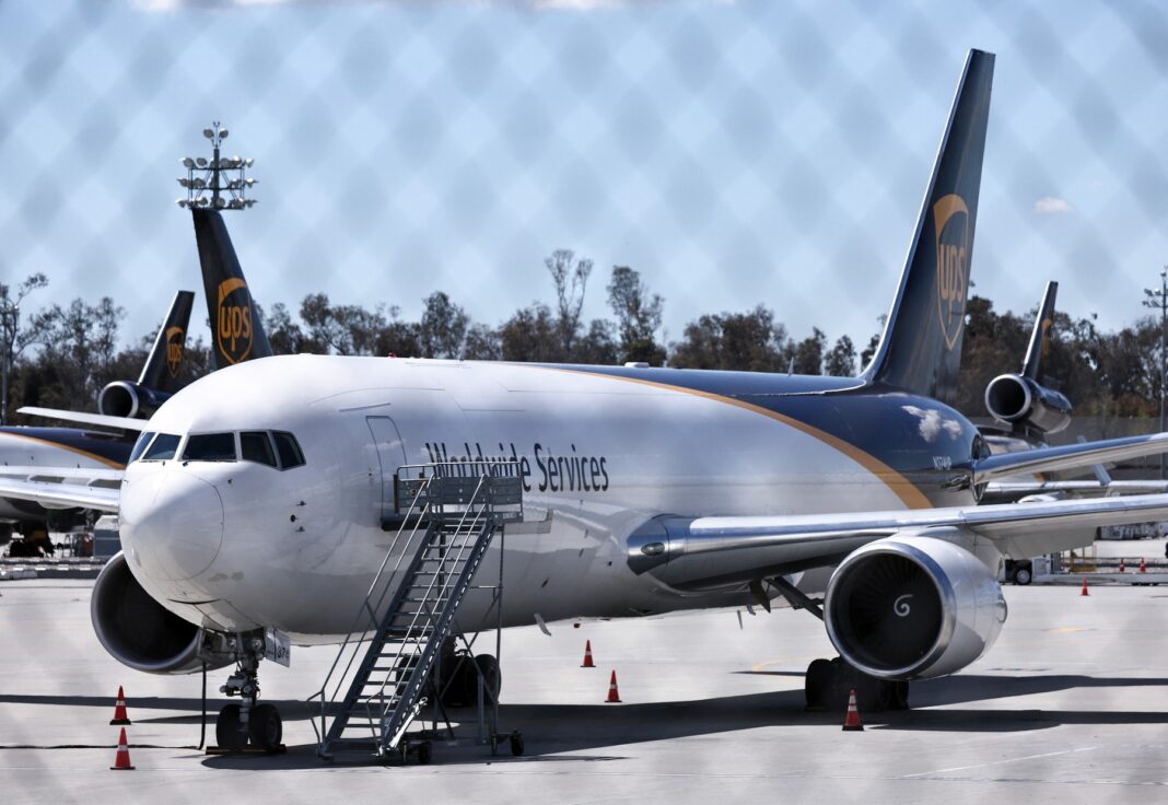 Fotografie cu caracter ilustrativ – Avioane United Parcel Service (UPS) parcate pe Aeroportul Internațional Ontario, 1 aprilie 2024, California.