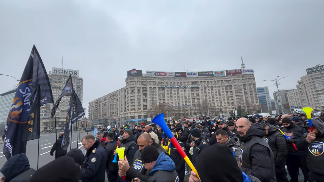 Protest al sindicaliștilor din sistemul penitenciar, în fața Guvernului, 30 decembrie 2024. Sursa foto: captură video SNPP Politia Penitenciara / Facebook.com