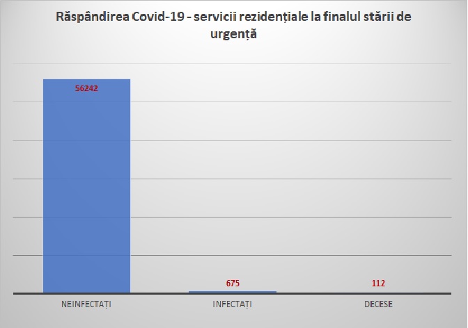 • 1,15% din totalul beneficiarilor din sistem sunt infectați cu virusul COVID-19, respectiv 657 persoane, dintre care 17 copii.