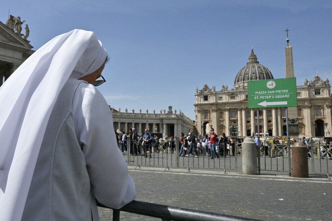 În spatele său, echipele de televiziune încep să își instaleze camerele în piața mare înconjurată de celebra colonadă a lui Bernini, dominată de silueta impunătoare a Bazilicii Sfântul Petru.