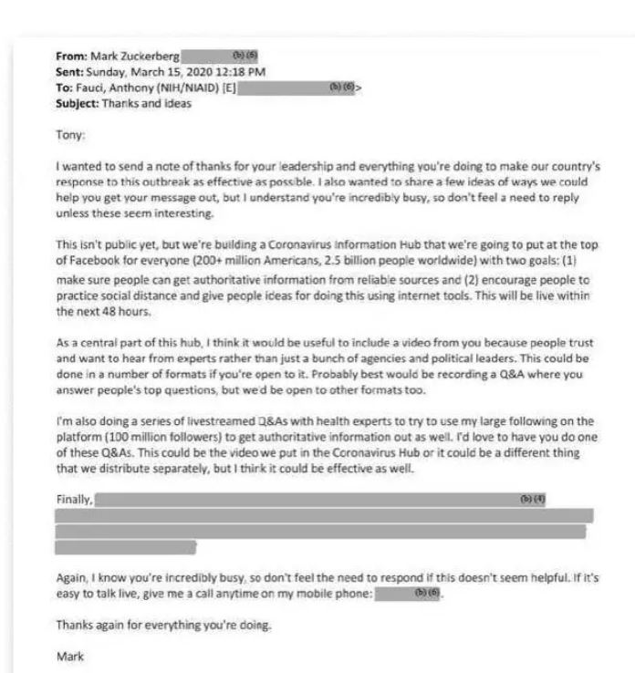 E-mailurile revizuite de BuzzFeed News îl mai arată pe Fauci că luptă cu un medicament antiviral, cu Ezekiel Emanuel, fost consilier al administrației Obama, adresând întrebări despre vaccinuri și primind o actualizare de la Mark Zuckerberg cu privire la planurile Facebook pentru un „centru de informare” al coronavirusului.