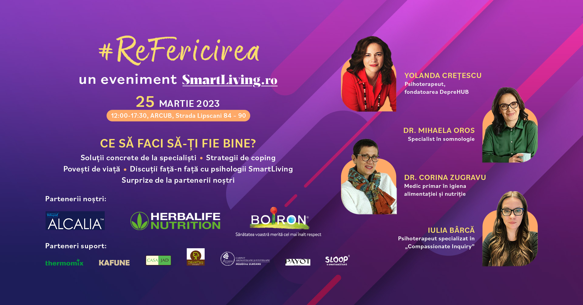 #Refericirea este primul eveniment care vine cu soluții concrete pentru starea de bine, recomandate de psihologi și psihoterapeuți, experți în nutriție, specialiști în tratarea problemelor de somn și profesioniști din domeniul relaxării.
