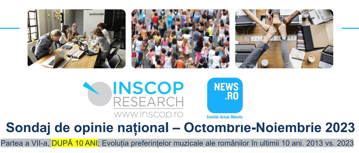 ”Preferinţele muzicale ale românilor au cunoscut unele modificări în ultimul deceniu, cele mai importante fiind scăderea semnificativă a ponderii celor care preferă muzica pop-dance, creşterea ponderii celor care ascultă manele, dar şi a celor care ascultă muzică clasică. Cifra cu semnificaţia cea mai importantă este ponderea foarte redusă a celor care declară că nu ascultă muzică, de sub 5% din populaţie. Practic, aproximativ 95% dintre români ascultă muzică, indiferent de genul muzical preferat”, remarcă Remus Ştefureac, director INSCOP Research.