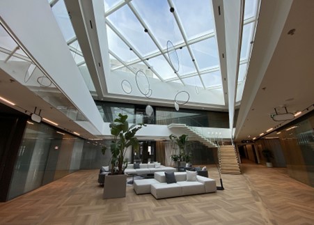 În plus, spațiul de relaxare ar trebui să fie conceput ca un punct focal în birou, acordându-se atenție podelei, culorilor de accent și încorporării de elemente bio-stilistice, cum ar fi plantele și iluminatul cald.