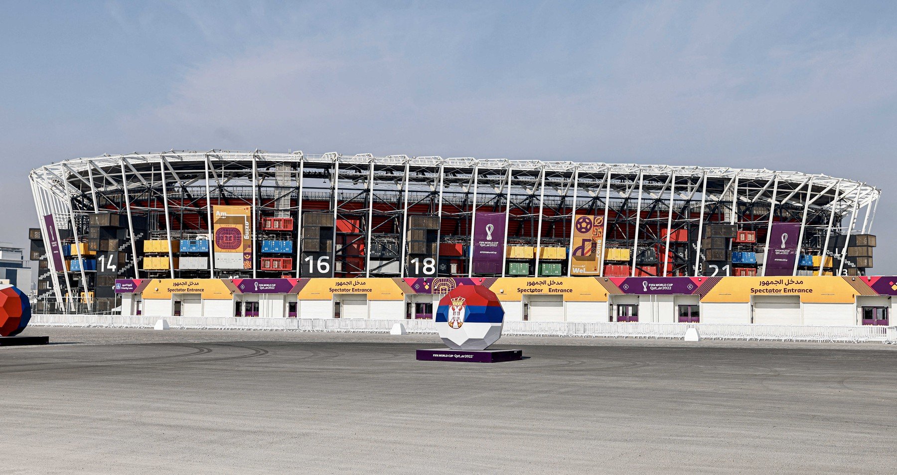 Capacitate: 40.000 de locuri. A fost inaugurat pe finalul lui 2021, iar lucrările au demarat în 2018. Suprafață: iarbă. Costuri de construcție: 721 de milioane de dolari. Este primul stadion temporar din istoria CM de fotbal, arena urmând să fie demontată după încheierea turneului final mondial. Numele vine de la fațada sa aparte: a fost realizată din 974 de containere maritime. Mai este cunoscut și sub numele de Ras Abu Aboud. Unde se află: la 10 kilometri est de centrul orașului Doha.