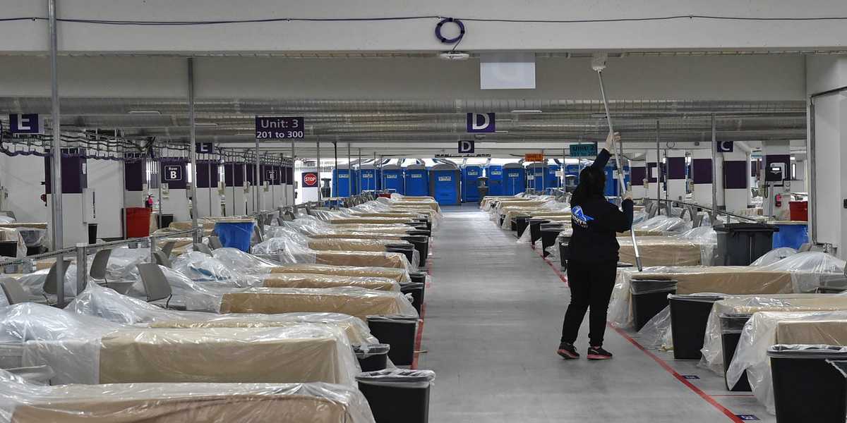 Locul, cu o capacitate totală de peste 1.400 de paturi separate unul de celălalt prin rânduri de ecrane imaculate, a fost inaugurat pe 12 noiembrie de către conducerea spitalului pentru a anticipa noul focar de pandemie care afectează vestul Statelor Unite.