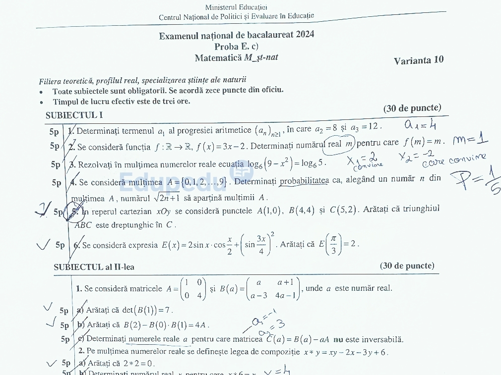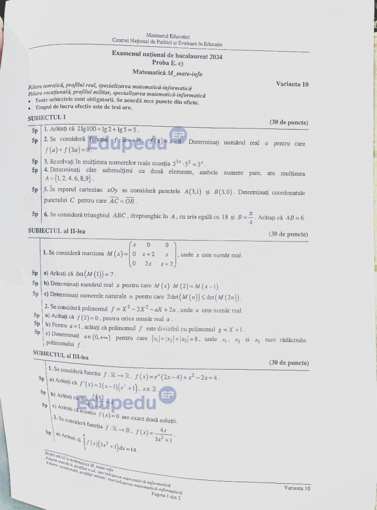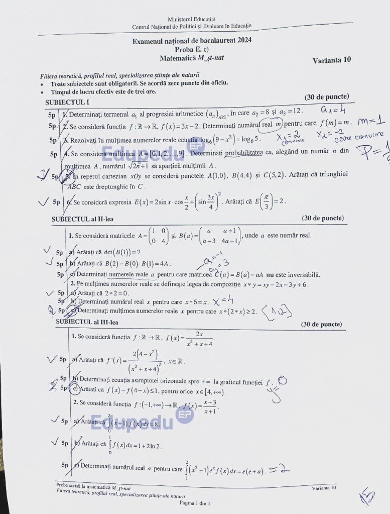 Subiectele la Matematică la BAC 2024, Mate-Info și Științe ale Naturii, au fost publicate de edupedu.ro, după încheierea probei.