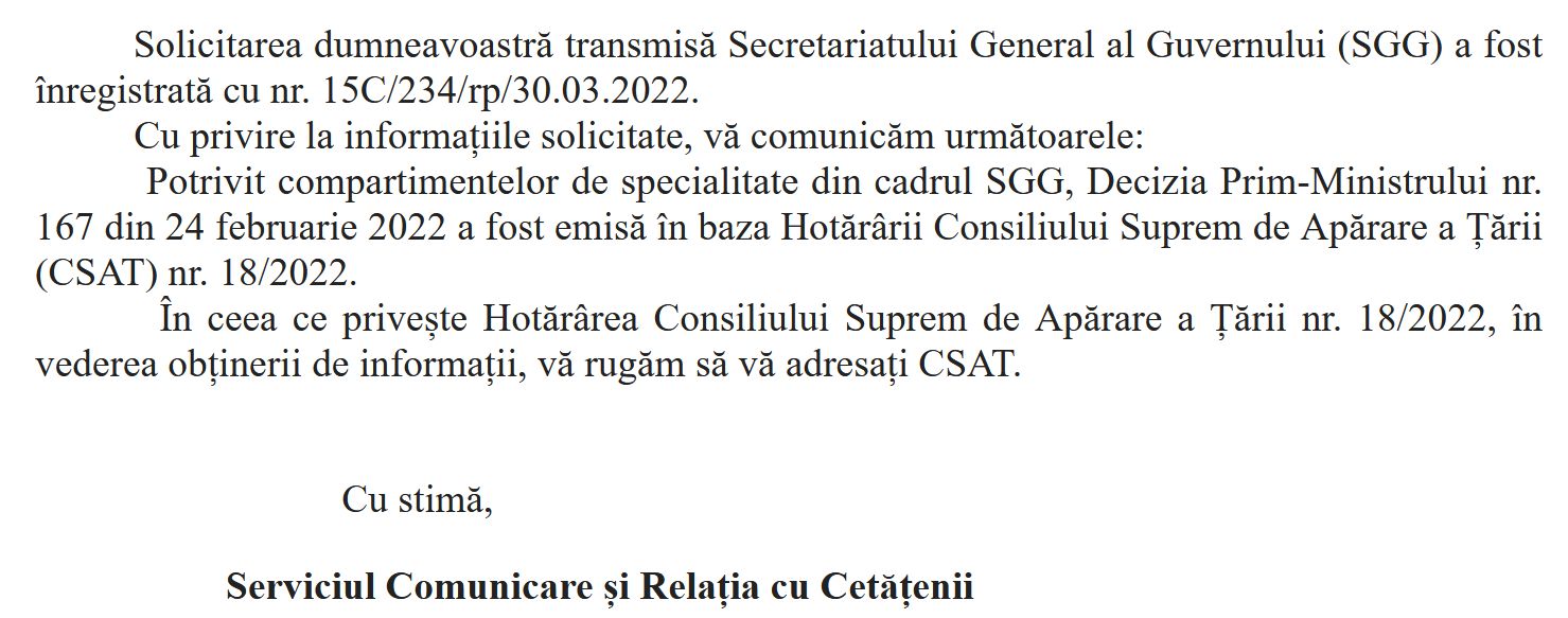 - Răspunsul Secretariatului General al Guvernului: