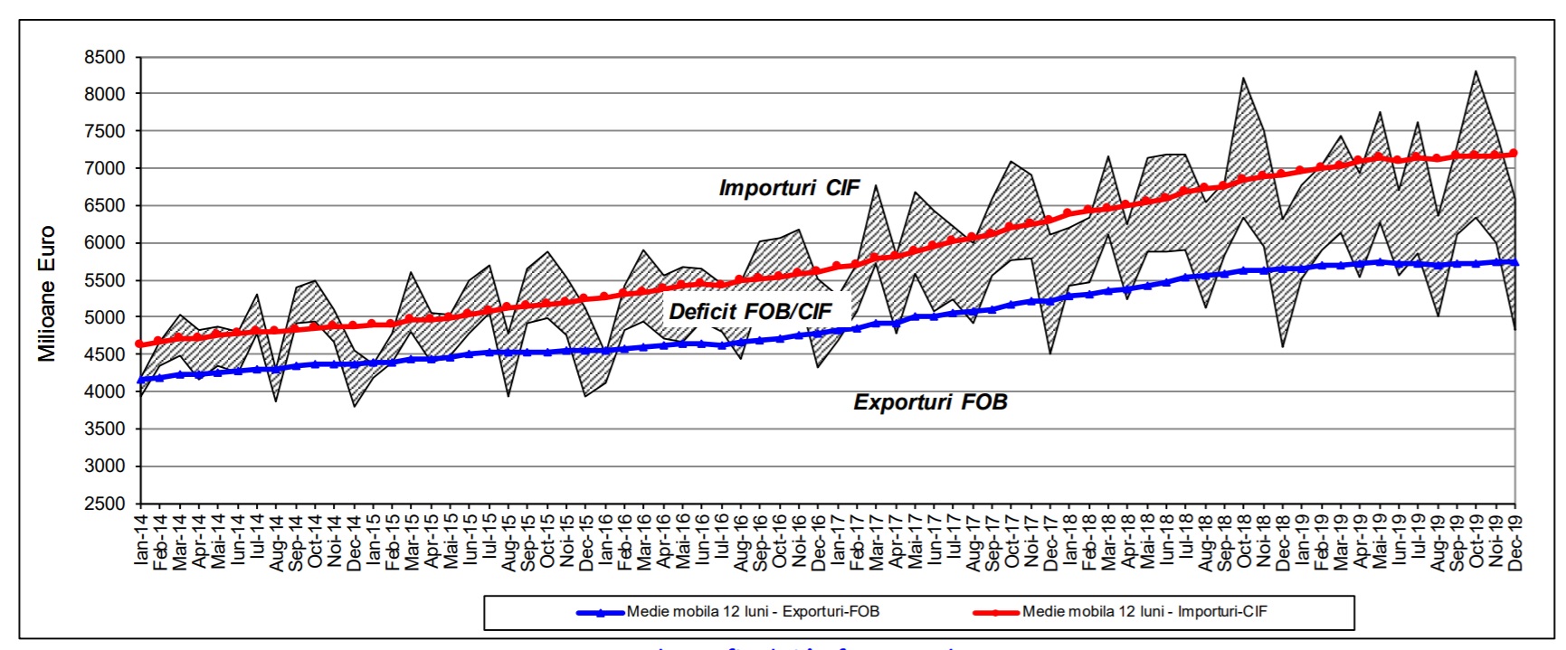 Ca să vedeți cum se deteriorează balanța comercială an de an, uitați-vă la graficul de mai jos