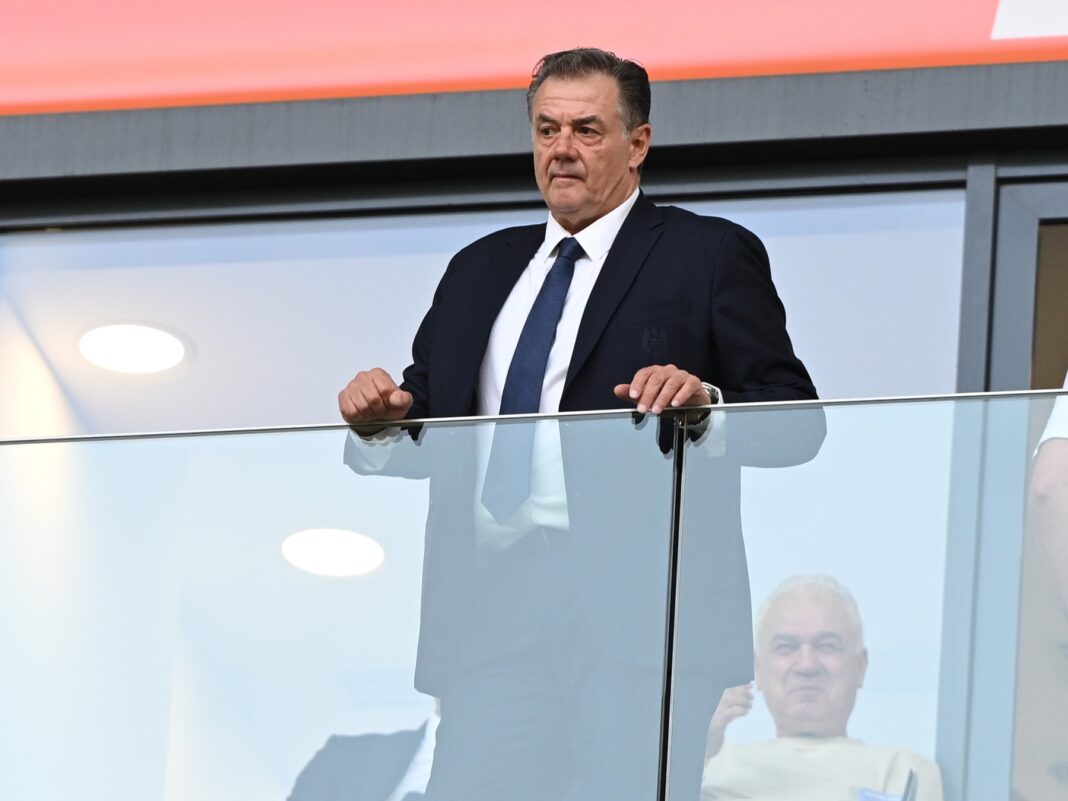Kyros Vassaras în tribună la meciul dintre FCSB și CFR Cluj, Supercupa României, desfășurat pe Stadionul Steaua-Ghencea din București, 5 iulie 2025.
