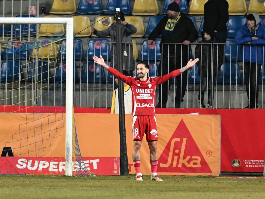 Eduard Marian Florescu, în timpul meciului de fotbal dintre Petrolul Ploiești și FC Botoșani, desfășurat pe Stadionul Ilie Oană din Ploiești, pe 27 ianuarie 2025.