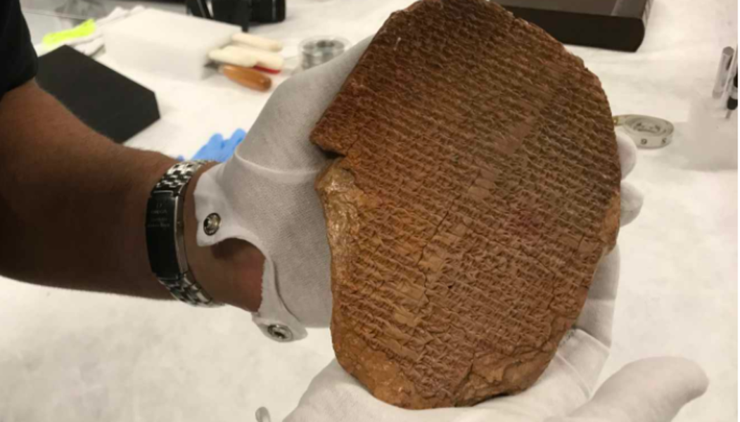 Prețioasa piesă arheologică, pe care apar caractere cuneiforme, numită și „tăbliţa visului lui Ghilgameş”, ar fi fost „introdusă în mod fraudulos pe piața americană de artă în 2007”, înainte de a fi confiscată de autoritățile judiciare ale țării în 2019, potrivit UNESCO.