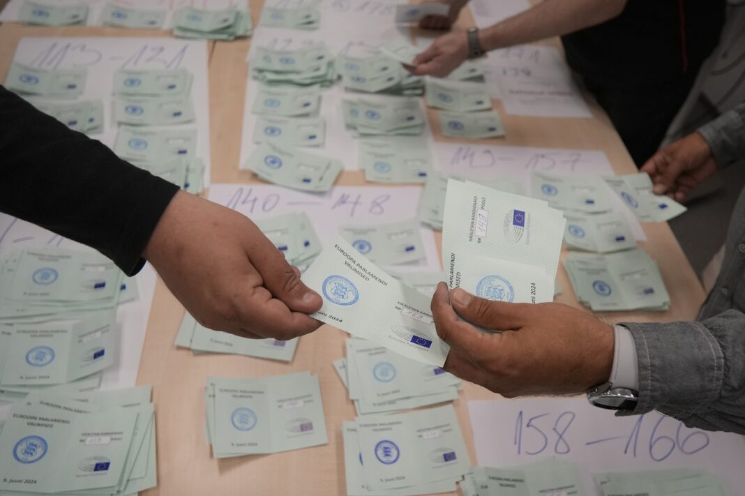 Fotografie ilustrativă – Buletine de vot numărate la o secție de votare, în urma alegerilor pentru Parlamentul European, la Tallinn, Estonia, 9 iunie 2024.