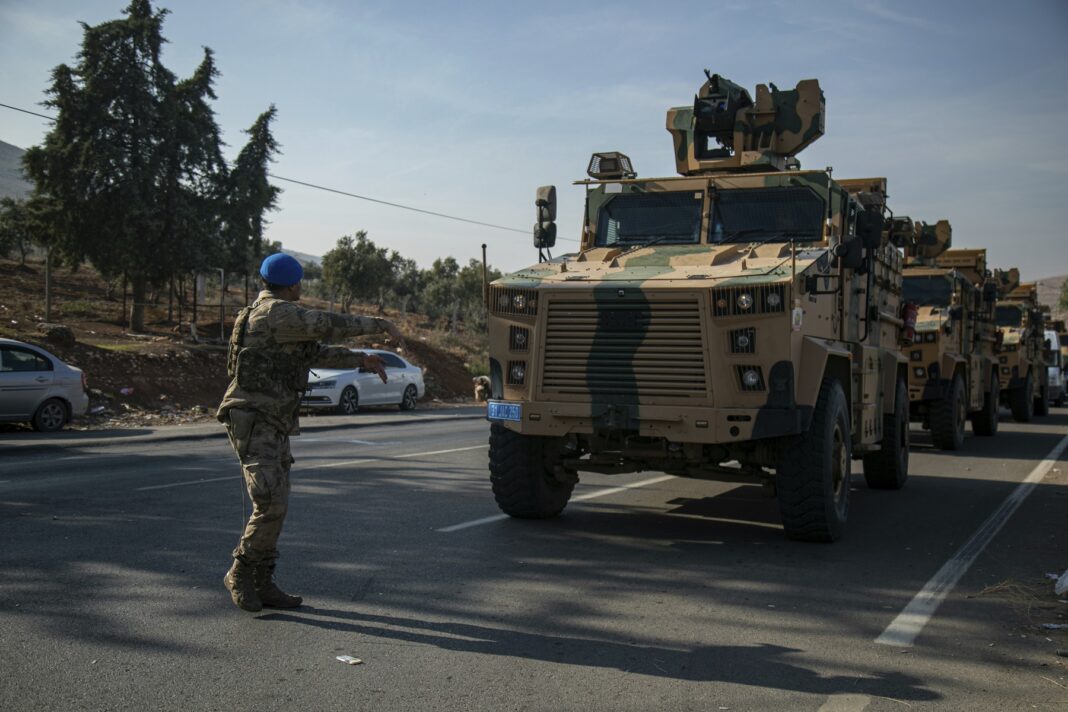 Vehicule blindate ale armatei turce, lângă orașul Kilis, sudul Turciei, 9 decembrie 2024.