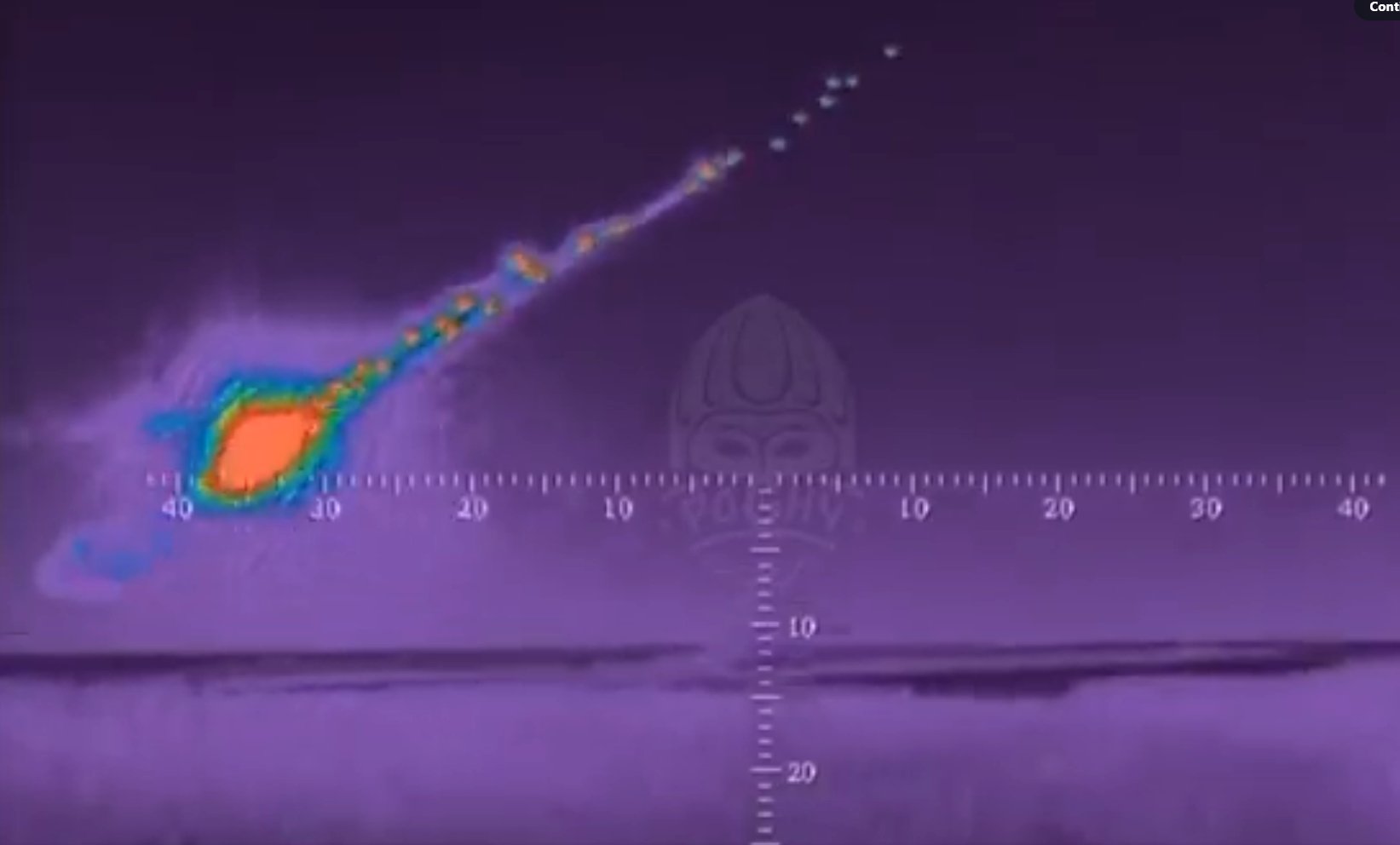 Footage from thermal imaging camera of Russian combat helicopters launching a high-angle salvo with unguided rockets at Ukrainian positions. Date and location not provided. pic.twitter.com/B2Yvz8SC0N