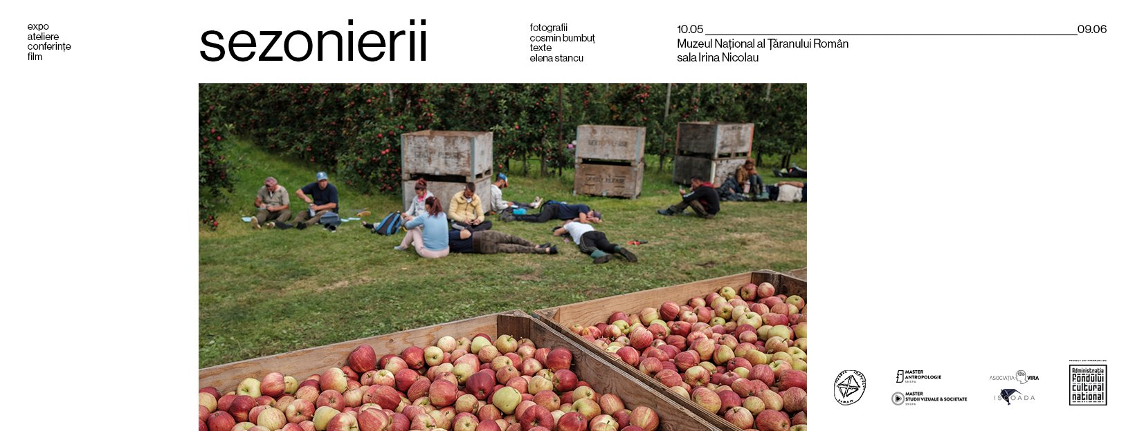 Muzeul Național al Țăranului Român, sala Irina Nicolau, expoziția „Sezonierii”. Fotografiile lui Cosmin Bumbuț cu muncitorii migranți din Spania, Anglia și Germania.