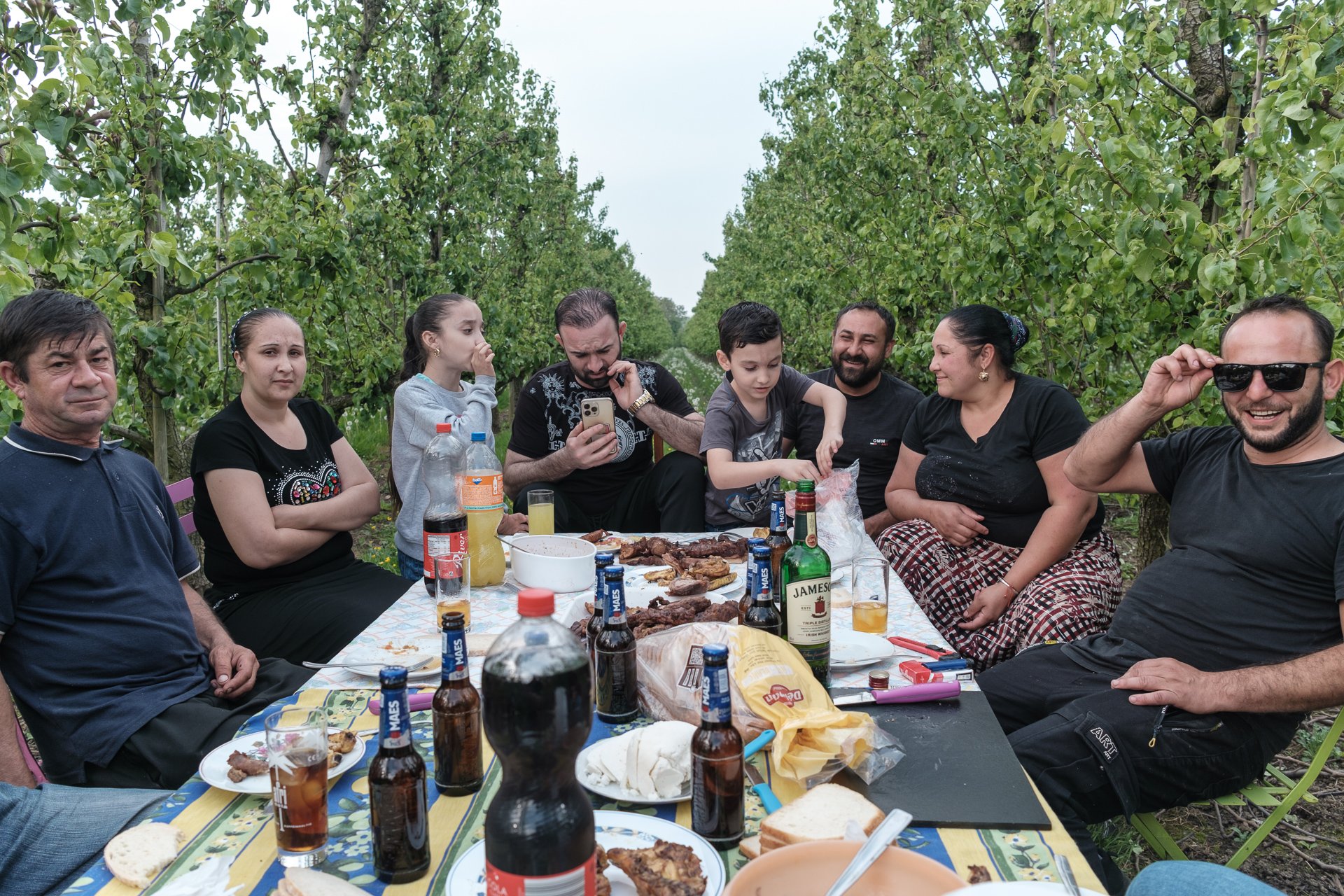 Nu văd marea deși ea e la câțiva kilometri. Muncesc până când soarele face munca imposibilă. Mănâncă din bucate aduse de acasă. Zeci de kilograme de carne congelată, de conserve, puse pe autobuz. Nu merg la supermarket, iar când merg își iau chestii ieftine, își fac calcule eronate, uite cum a fost un român care săptămâni a mâncat pâine cu Nutella până s-a îmbolnăvit.