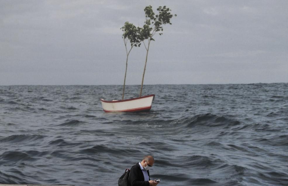 Bărbat plimbându-se în Londra . (AP Photo/Kirsty Wigglesworth):