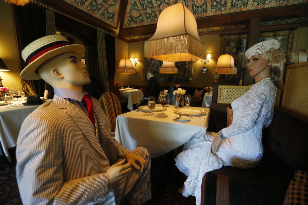 Manechine respectând distanțarea socială într-un restaurant din Washington, Virginia. (AP Photo/Steve Helber):
