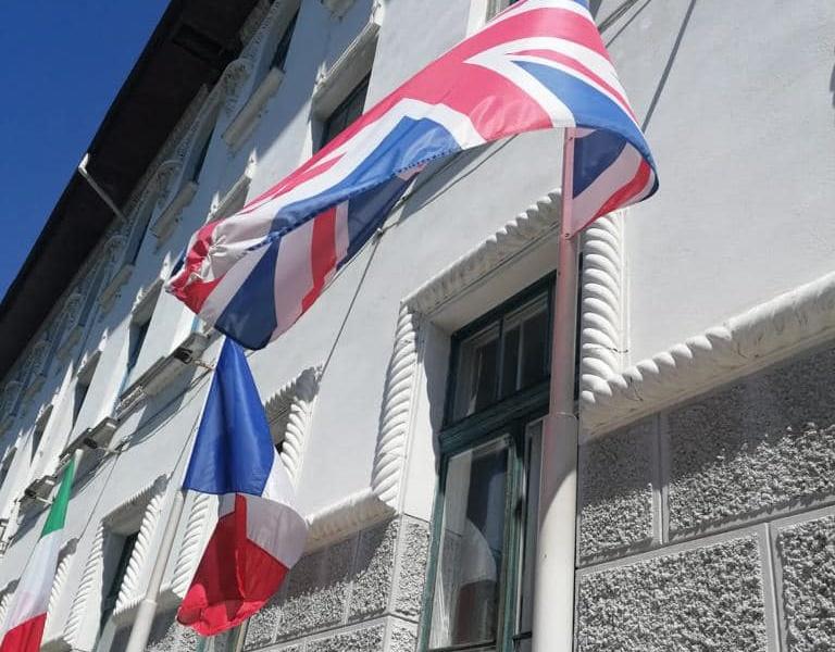 Steagurile din faţa Primăriei TimişoaraFoto: Facebook – Dominic Samuel Fritz