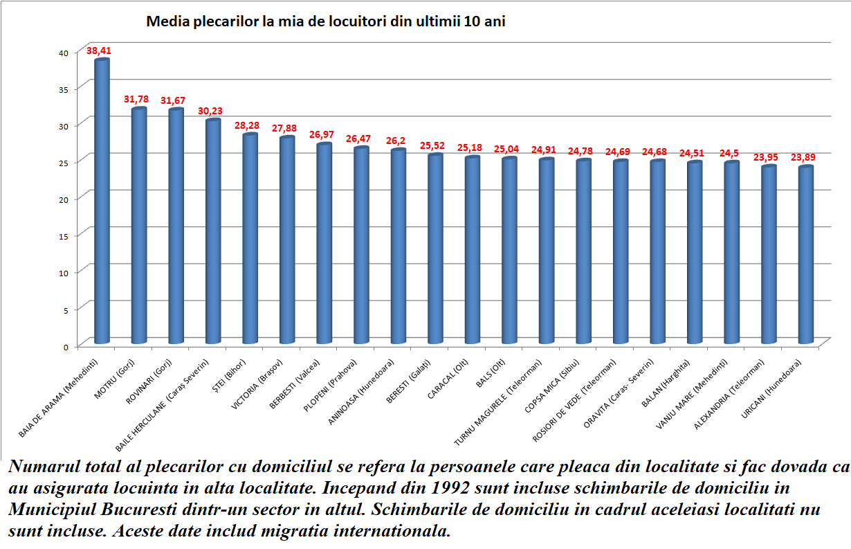 Am luat în calcul orașele și municipiile României, nu și satele sau comunele. Evident, o localitate este un corp viu. Oamenii pleacă, dar mai și vin. Noi am luat în calcul doar criteriul plecărilor. Si am constatat că sunt localități în care plecările din ultimii 10 ani ar fi redus cu trei sferturi populația locală. Noroc că au fost alți români care s-au mutat acolo, refacând deficitul demografic.