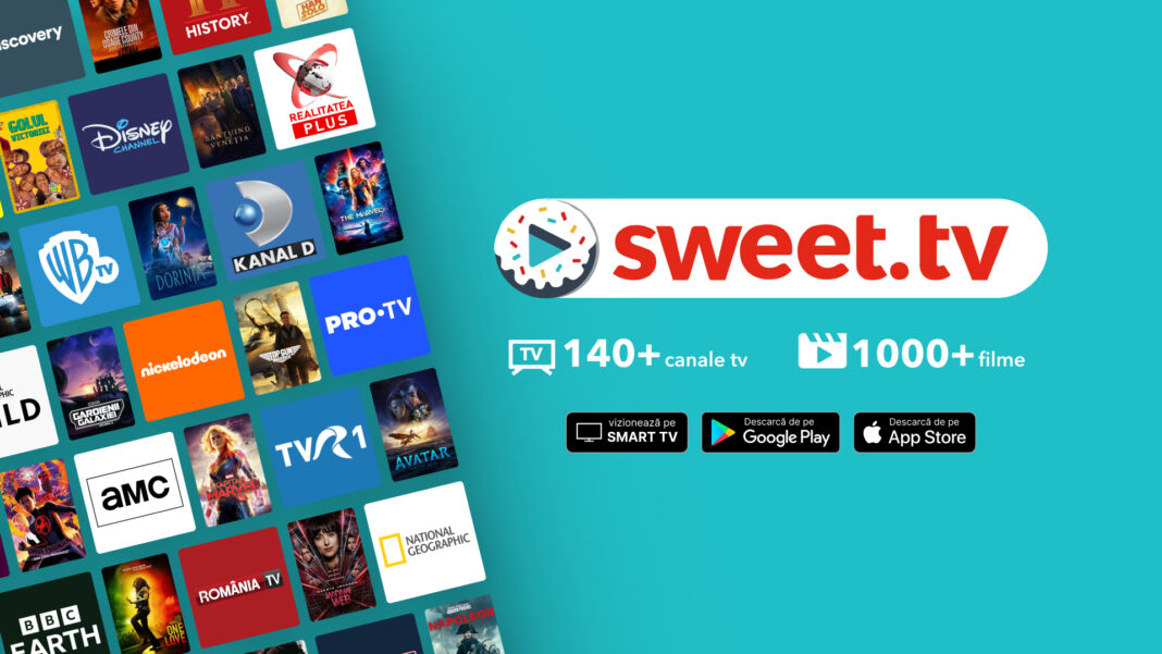 Descopera un portofoliu extins, cu televiziuni românești de top precum Pro TV, Kanal D, B1TV și TVR 1. Descoperă canale de film internaționale precum AMC, Warner TV, Film Cafe și rămâi în top cu canale de sport Pro Arena, TVR Sport, și Eurosport 1 și 2. Descoperă lumea cu Discovery, Național Geographic, History și distrează-te cu cei mici cu Disney Channel, Cartoonito și JimJam. SWEET.TV oferă funcția de catch-up cu capacități de înregistrare de până la 7 zile, împreună cu funcțiile de pauză și derulare, astfel încât te vei bucura de emisiunile TV preferate oricând dorești.