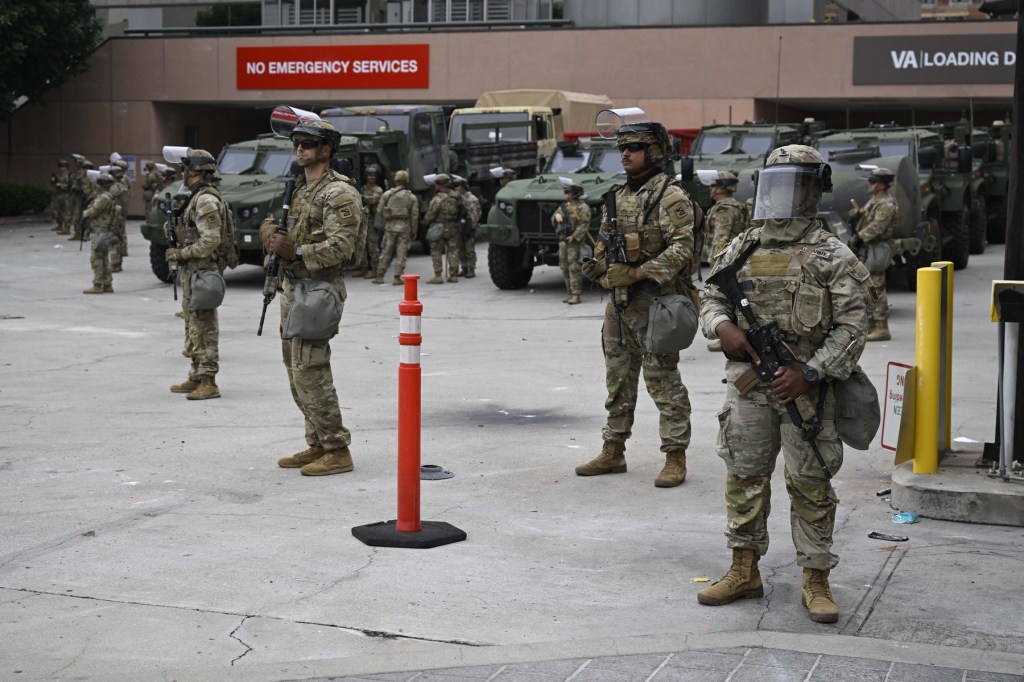 Comandamentul de Nord al SUA a declarat că 300 de membri ai Gărzii Naţionale din California au fost dislocaţi în trei locuri din zona Los Angeles. Departamentul Securităţii Interne a declarat că misiunea Gărzii este de a proteja clădirile federale.