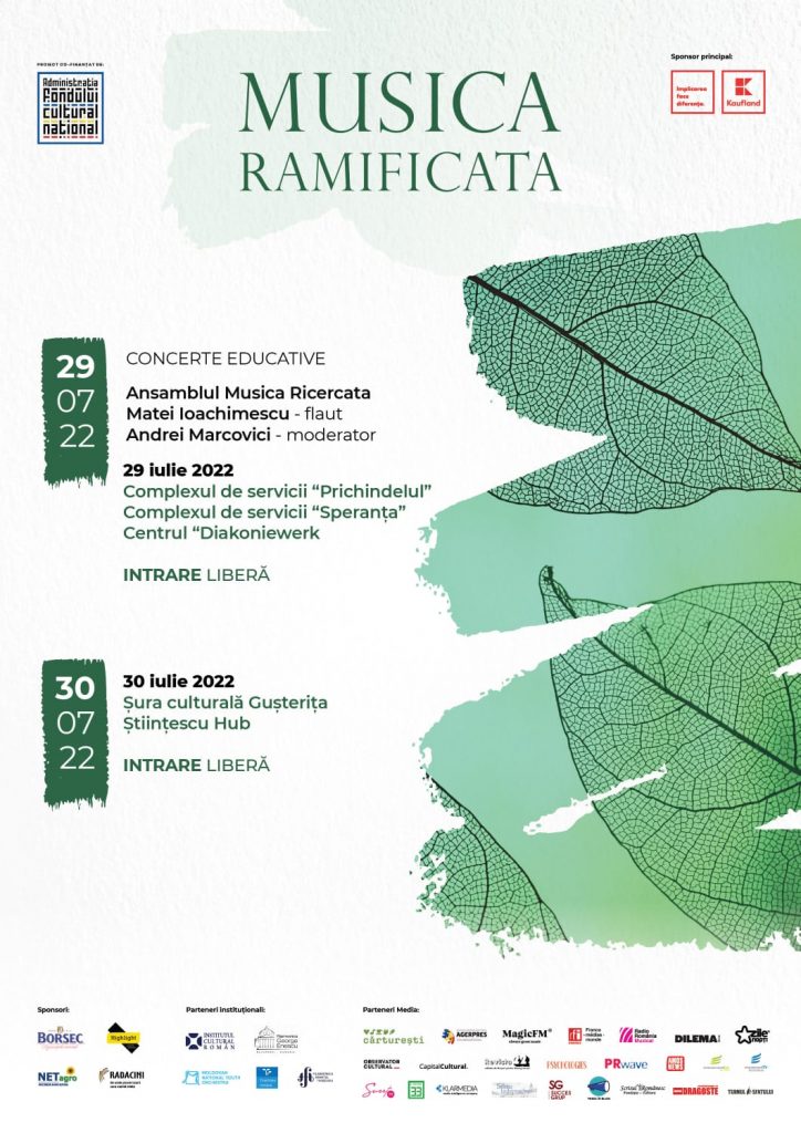 Vă invităm să vă lăsați cuprinși de magia ansamblului Musica Ramificata, alături de flautistul Matei Ioachimescu și dirijorul Cristian Spătaru, prezenți în cele două orașe unde obișnuiește să aibă concerte (Sibiu, București), dar și cu recitaluri în centrele de plasament din Sibiu și împrejurimi.