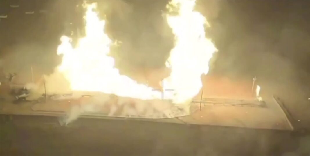 Stația rusească de gaze Sudja a fost bombardată. Credit line: social media / WillWest News / Profimedia