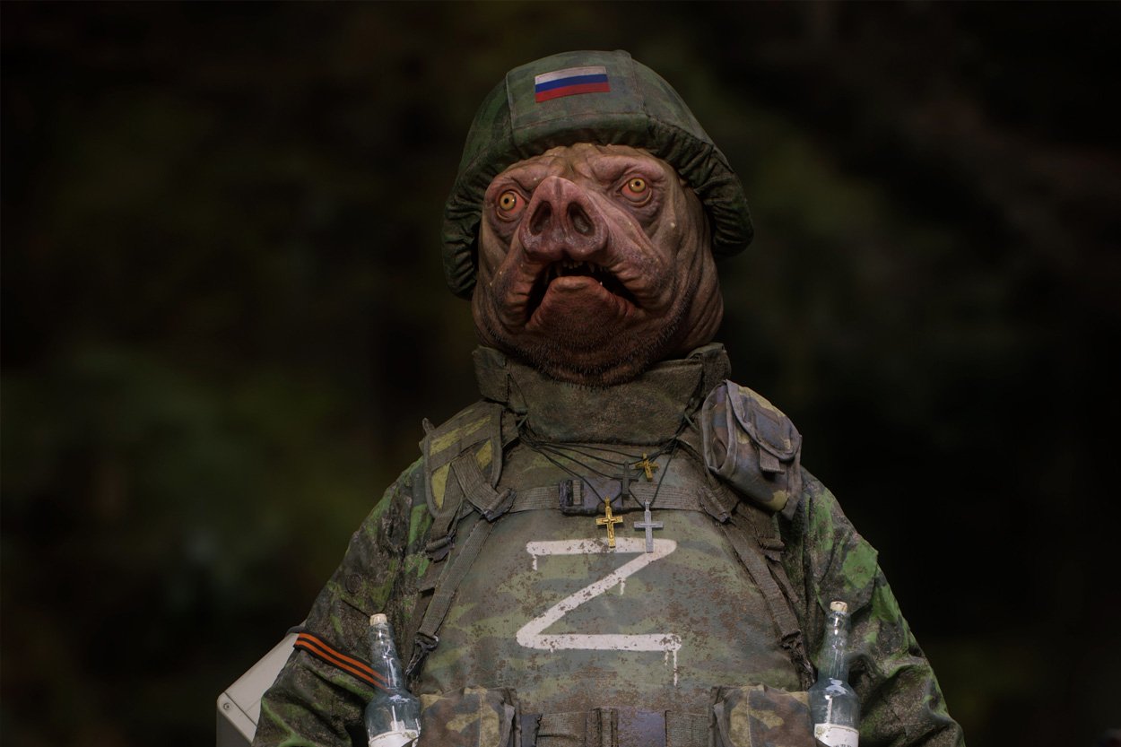 Acestea înfățișează soldatul rus cu câteva elemente caracteristice precum simbolul „Z” cu care au fost inscripționate numeroase tancuri, blindate și alte vehicule ale armatei ruse din Ucraina și bunuri furate de la populația ucraineană, date fiind numeroasele relatări în acest sens.