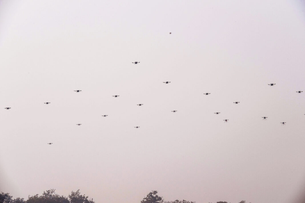Drone ce operează în roi în timpul unei demonstrații militare, FOTO: Prakash Singh / AFP / Profimedia Images