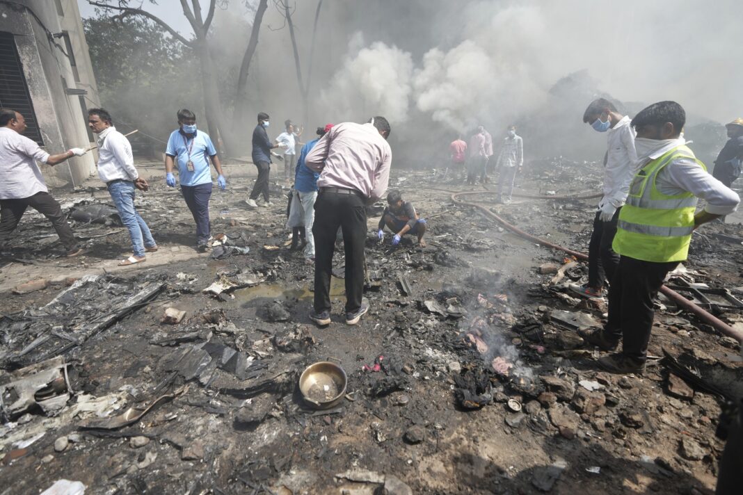 Pompierii intervin pentru stingerea unui incendiu cauzat de prăbușirea unui avion din Ahmedabad, India. Foto: Ajit Solanki / AP / Profimedia
