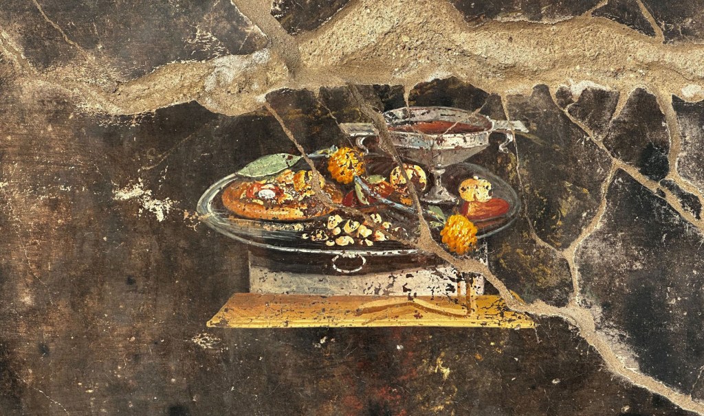 În 2023, arheologii au descoperit la Pompei o frescă reprezentând o lipie asemănătoare focacciei, acoperită cu ceea ce par a fi semințe de rodie, curmale, condimente și o pastă similară celei pesto. Imaginea a făcut înconjurul lumii și i-a aprins imaginația lui Zara.