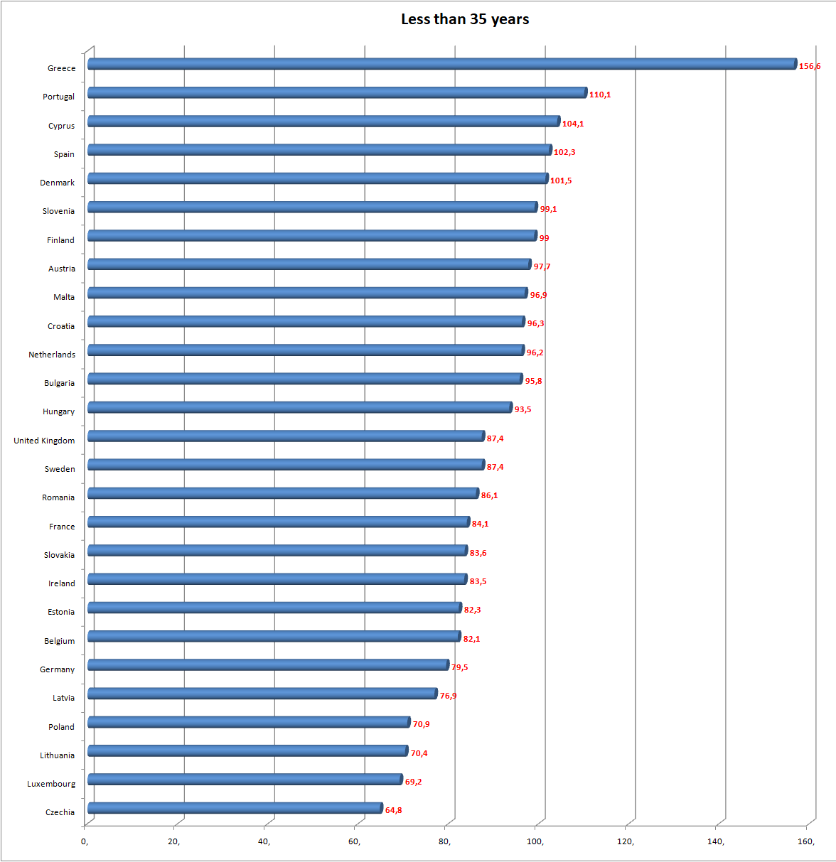Pentru cei cu vârsta mai mică de 35 de ani, graficul statelor europene arată ca mai jos (click pentru a mări imaginea):