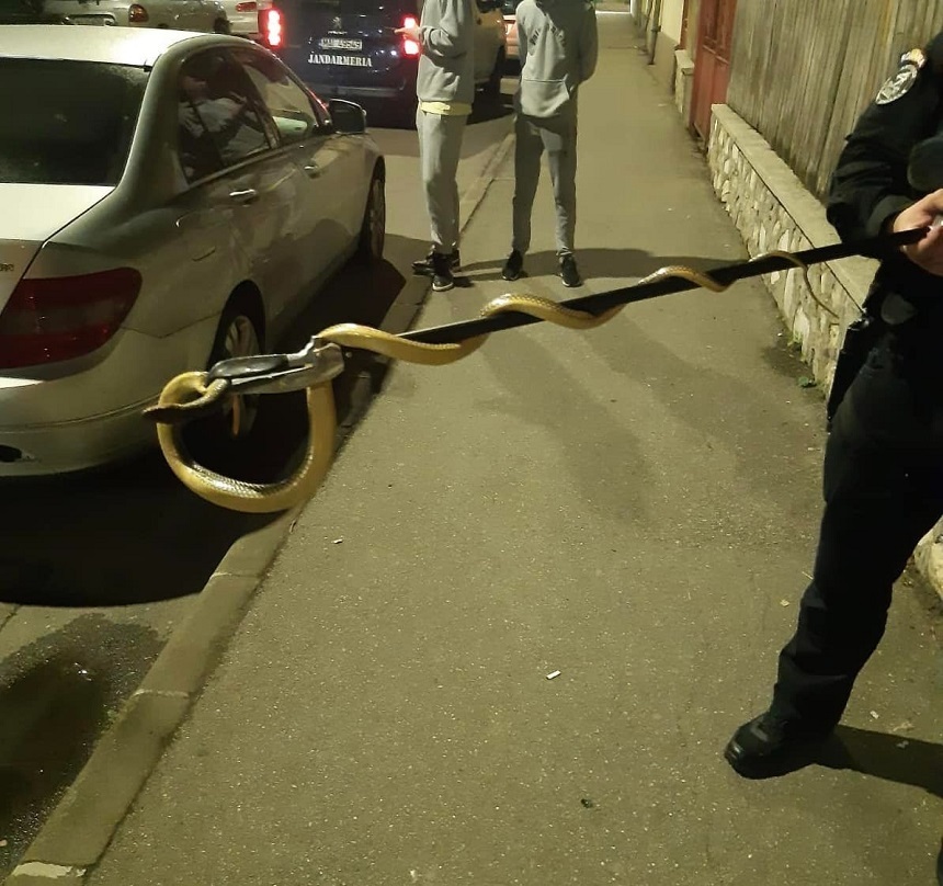 ”Şarpe de peste 1,5 m scos de jandarmi de la motorul unei maşini. Un apel pe 112 primit seara trecută în jurul orei 23.00 a direcţionat echipajul de jandarmerie în zona Şcolii Generale nr.6, unde s-a semnalat prezenţa unui şarpe aflat la roata unei maşini”, a transmis Inspectoratul de Jandarmi Mehedinţi, sâmbătă.