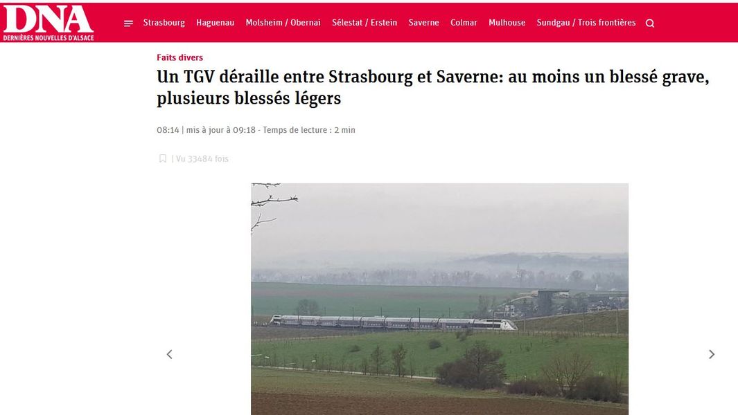 Trenul a plecat din Strasbourg la 7.19 – către Paris – și a deraiat la 7.30 în zona comunei Ingenheim, în regiunea Hochfelden.