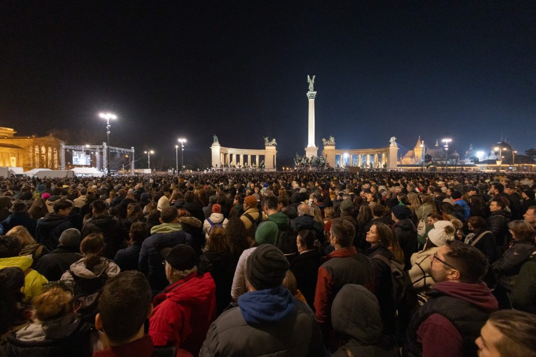 Zeci de mii de unguri au răspuns vineri, în centrul Budapestei, la apelul unei figuri a opoziției față de Viktor Orban, în timp ce indignarea continuă în legătură cu grațierea acordată într-un caz de crimă împotriva copiilor, potrivit AFP.
