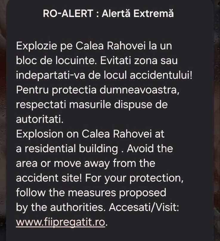 Totodată, a fost transmis un mesaj RO-Alert către populație.